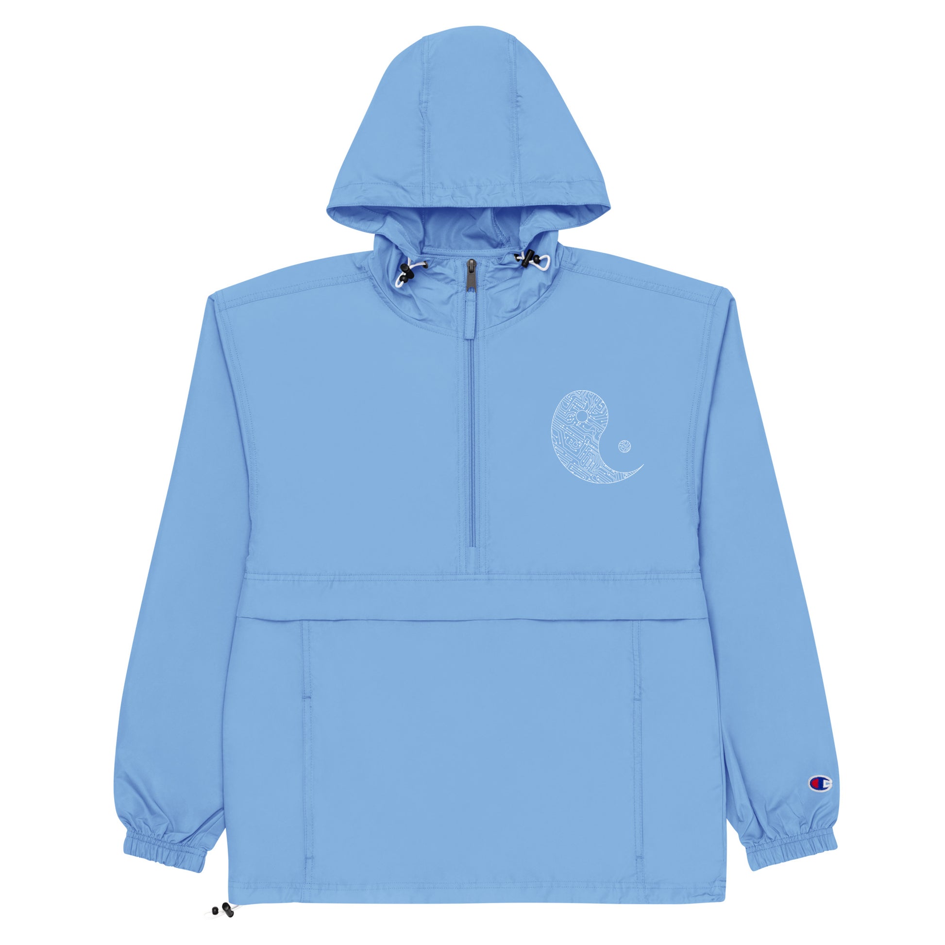 Wind and rain proof Champion Jacket with embroidered Ying Yang on left chest. Packable.